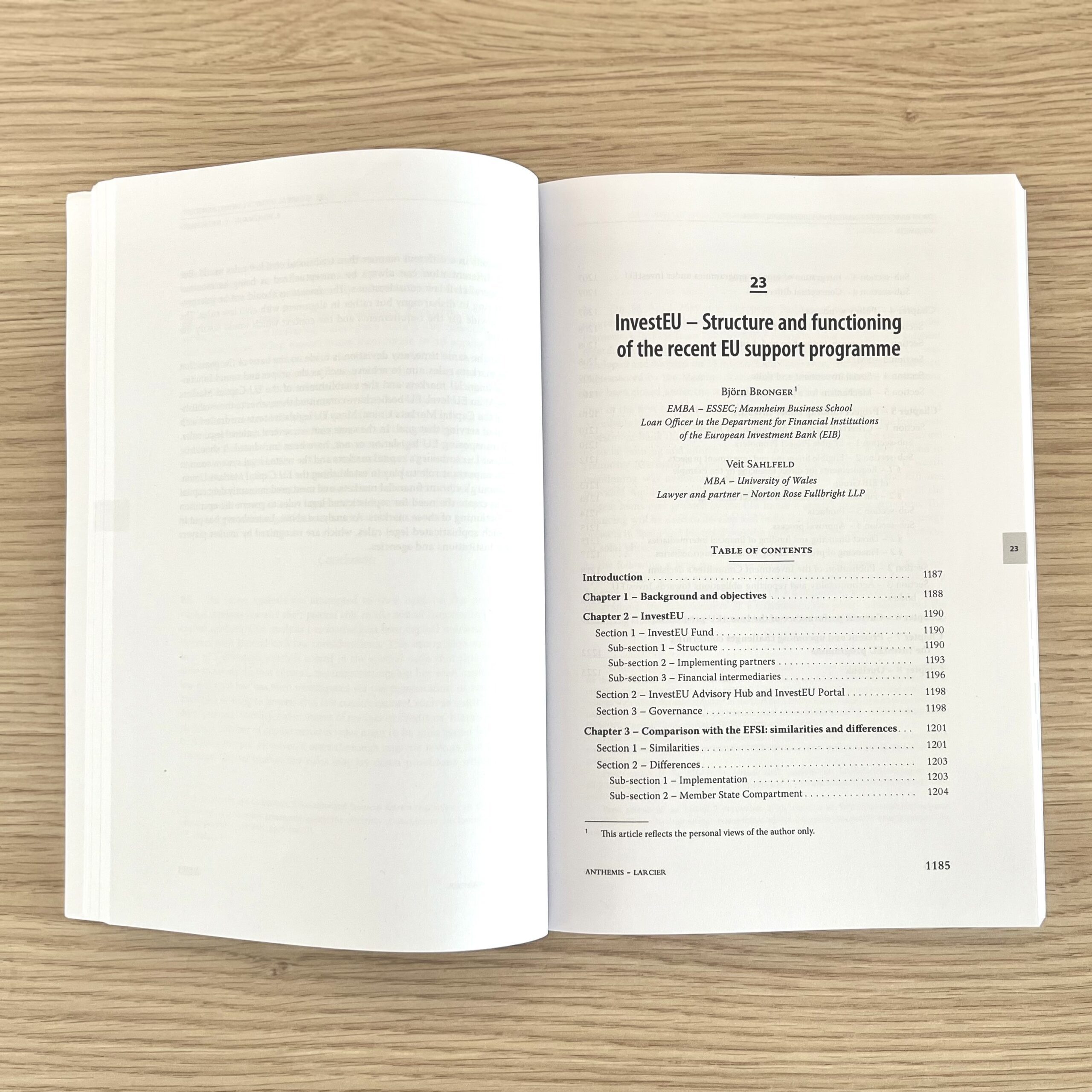 In Band 3 findet sich ab Seite 1185 die bisher umfassendste Analyse von InvestEU, von seiner Entstehungsgeschichte bis hin zu den Voraussetzungen für eine (Projekt-)Finanzierung unter InvestEU. Zwar sind die Anforderungen einer Finanzierung unter InvestEU umfangreich, erlauben jedoch Finanzierungen bzw. Refinanzierungen an Unternehmen und Finanzinstitute, die ohne InvestEU nur sehr eingeschränkt bzw. zu unattraktiven Konditionen Zugang zum Finanzmarkt hätten. Ein Aufwand der sich somit sehr lohnen kann.